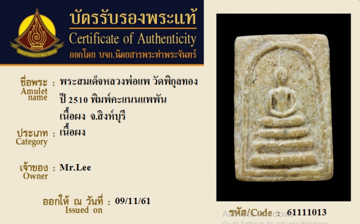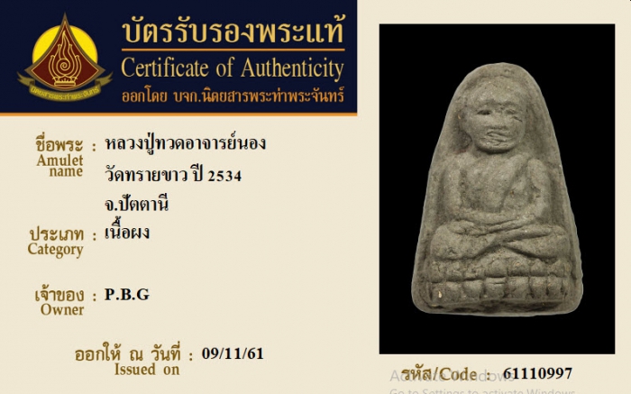 ค้นหาใบการันตีพระแท้