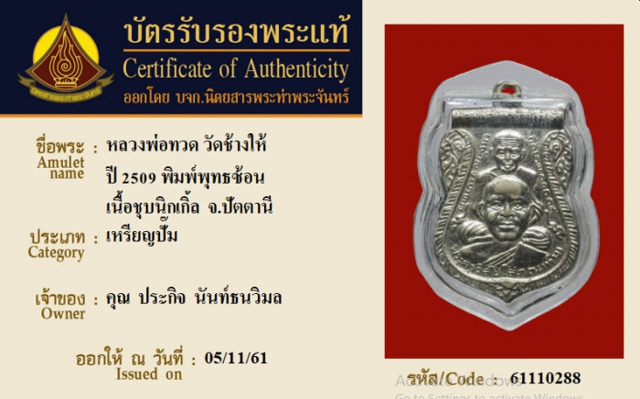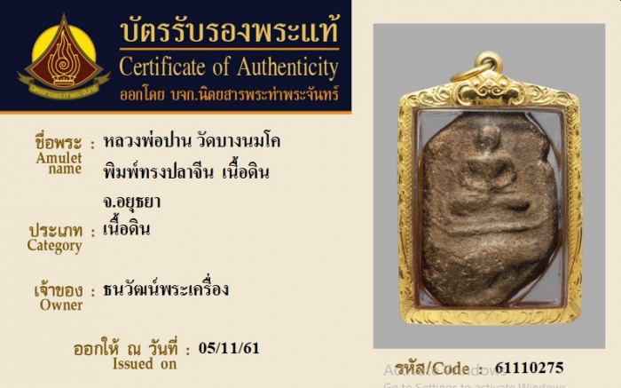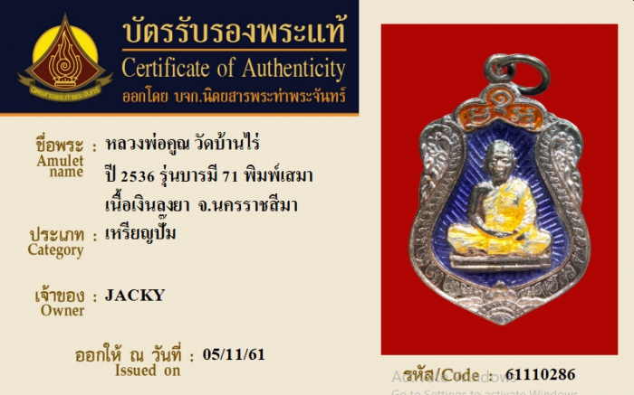 ค้นหาใบการันตีพระแท้