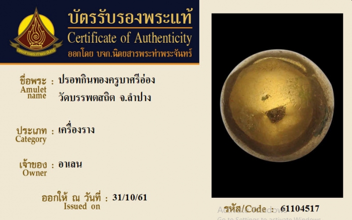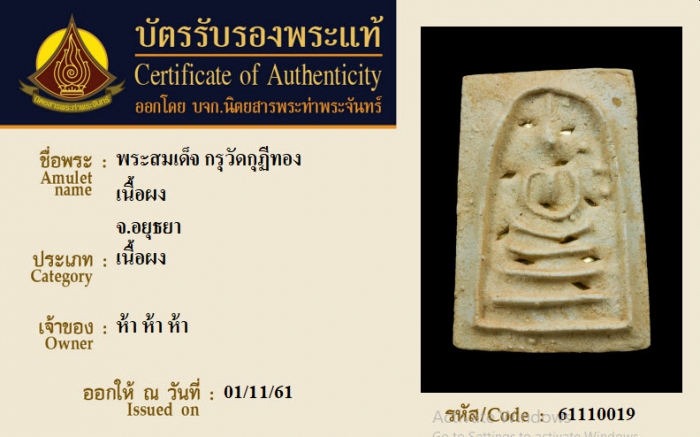 ค้นหาใบการันตีพระแท้