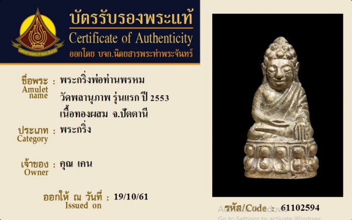 ค้นหาใบการันตีพระแท้