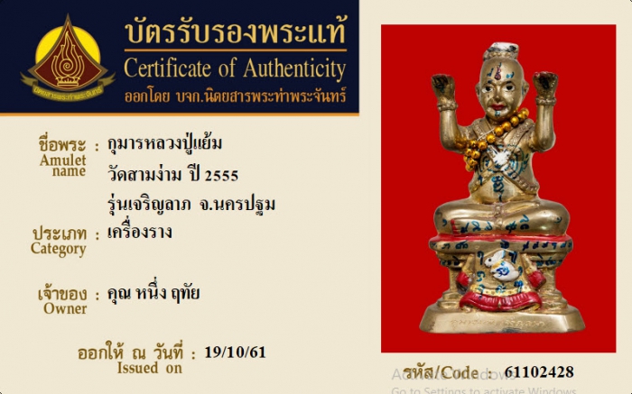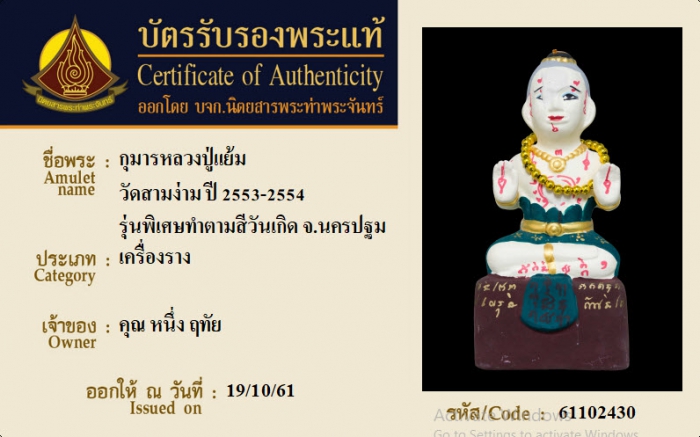 ค้นหาใบการันตีพระแท้