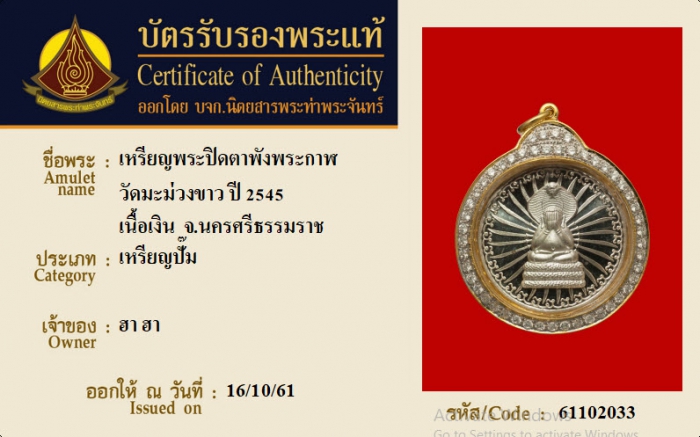 ค้นหาใบการันตีพระแท้