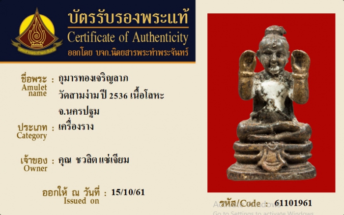 ค้นหาใบการันตีพระแท้