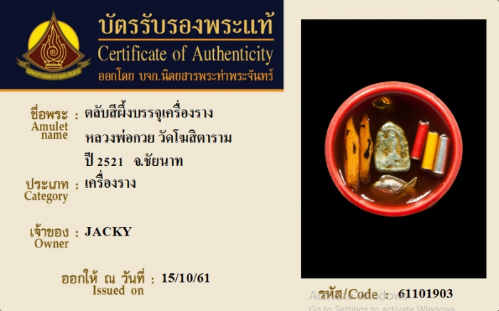 ค้นหาใบการันตีพระแท้