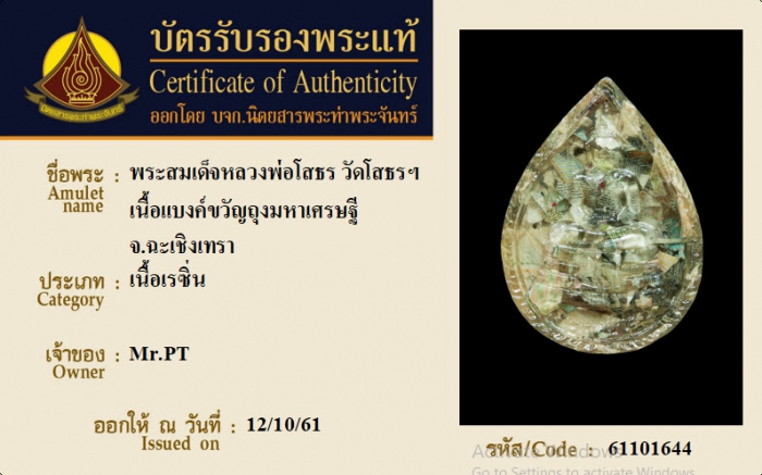 ค้นหาใบการันตีพระแท้
