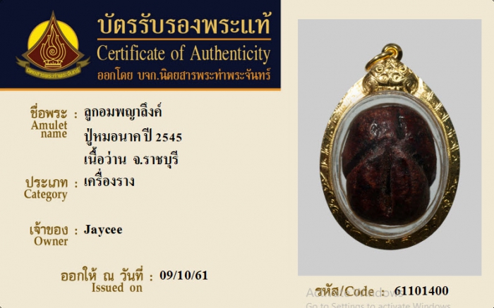 ค้นหาใบการันตีพระแท้