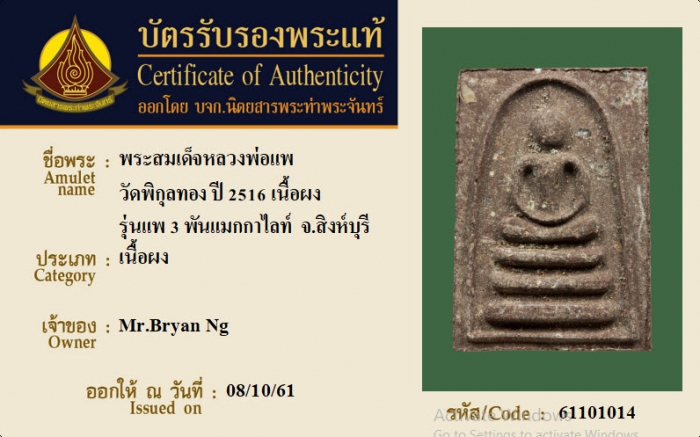 ค้นหาใบการันตีพระแท้