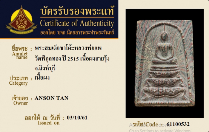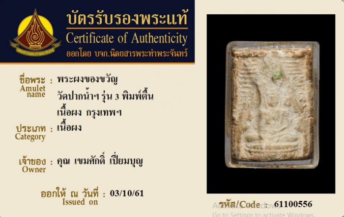 ค้นหาใบการันตีพระแท้