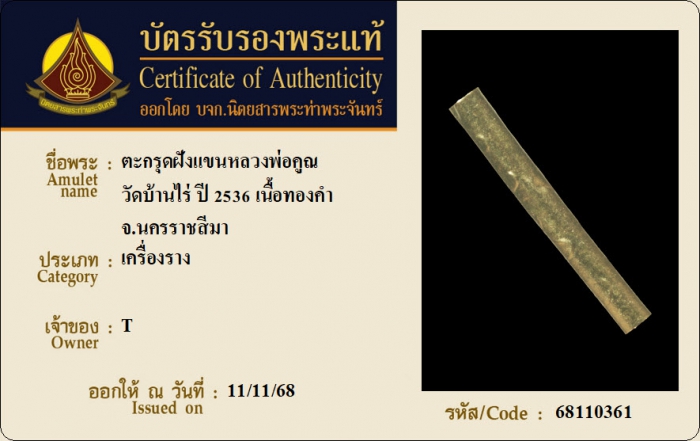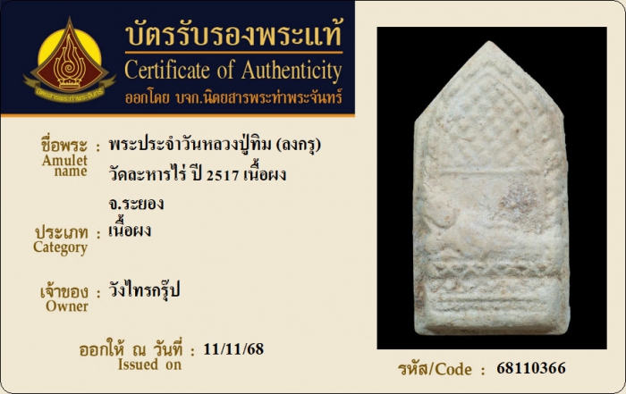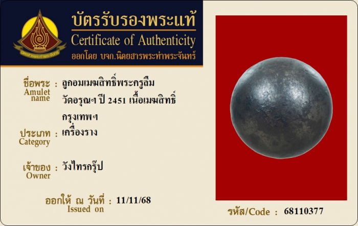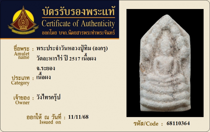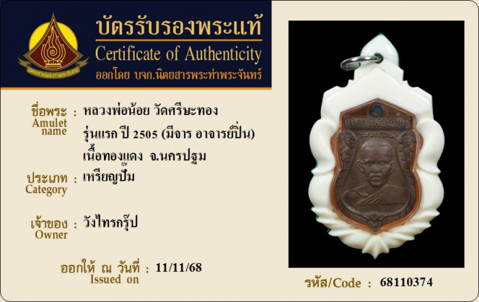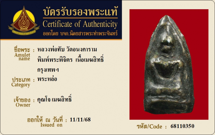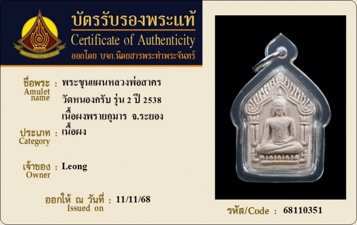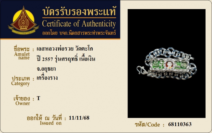ค้นหาใบการันตีพระแท้
