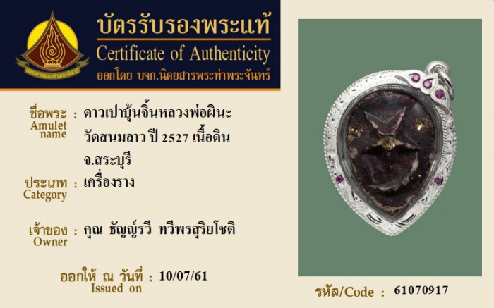 ค้นหาใบการันตีพระแท้