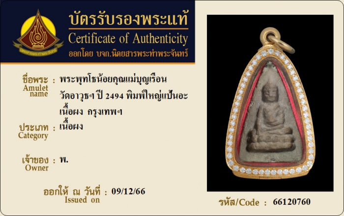 ค้นหาใบการันตีพระแท้