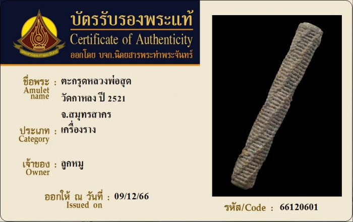 ค้นหาใบการันตีพระแท้