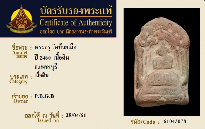 ค้นหาใบการันตีพระแท้