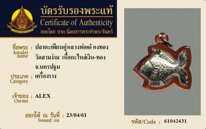 ค้นหาใบการันตีพระแท้