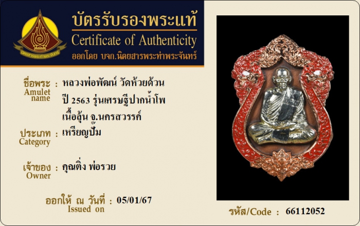 ค้นหาใบการันตีพระแท้