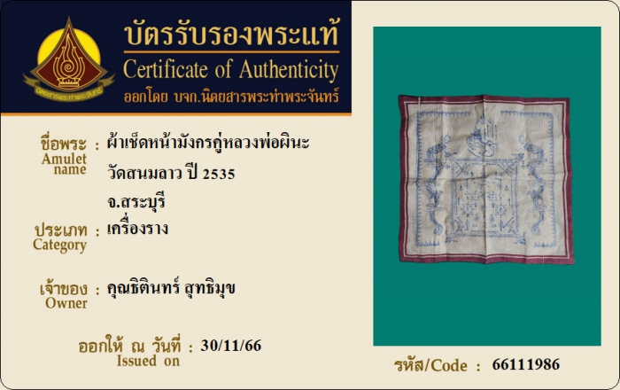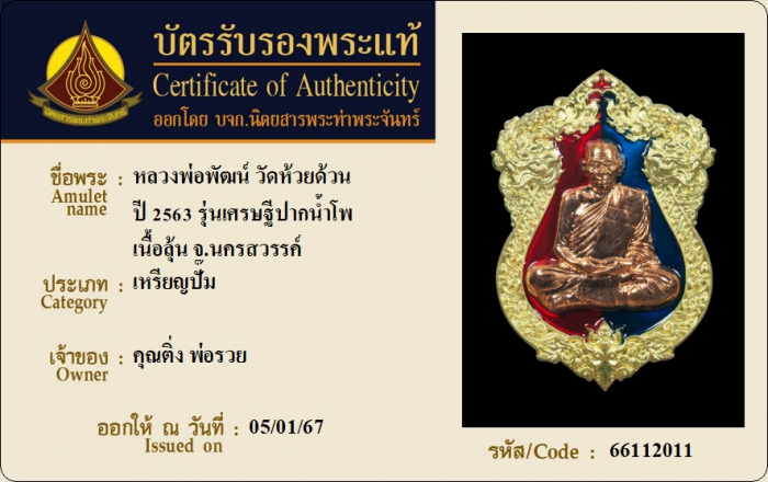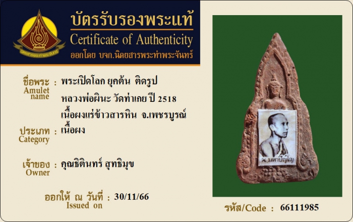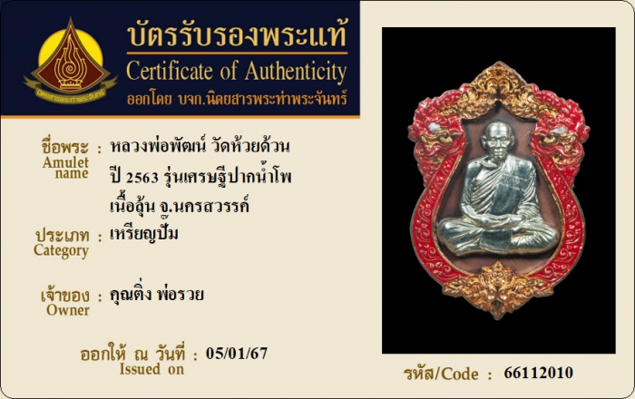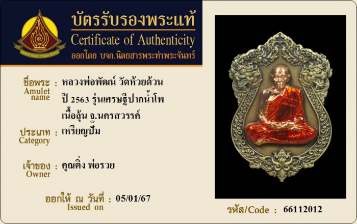 ค้นหาใบการันตีพระแท้