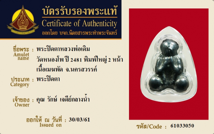 ค้นหาใบการันตีพระแท้