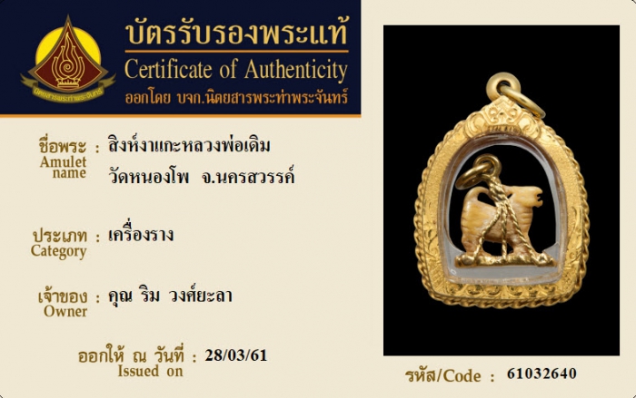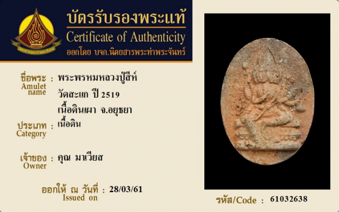 ค้นหาใบการันตีพระแท้