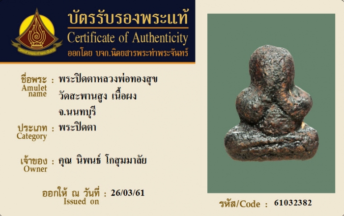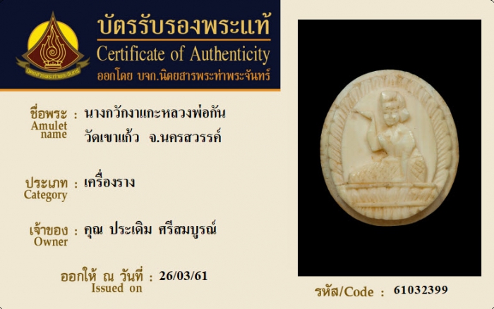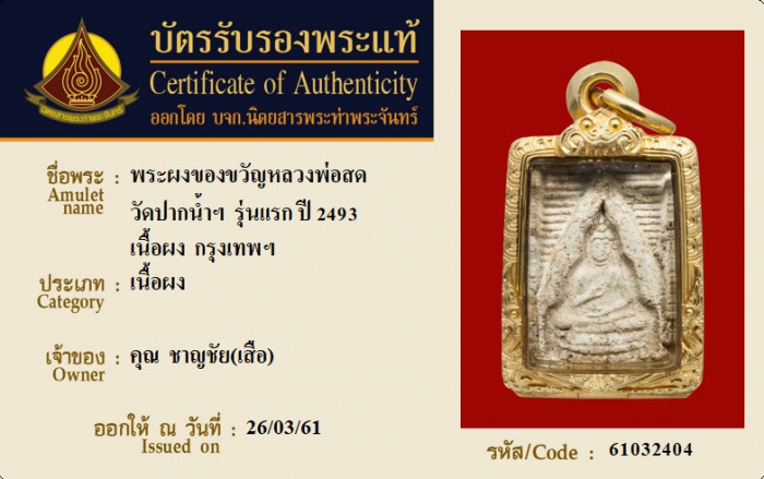 ค้นหาใบการันตีพระแท้