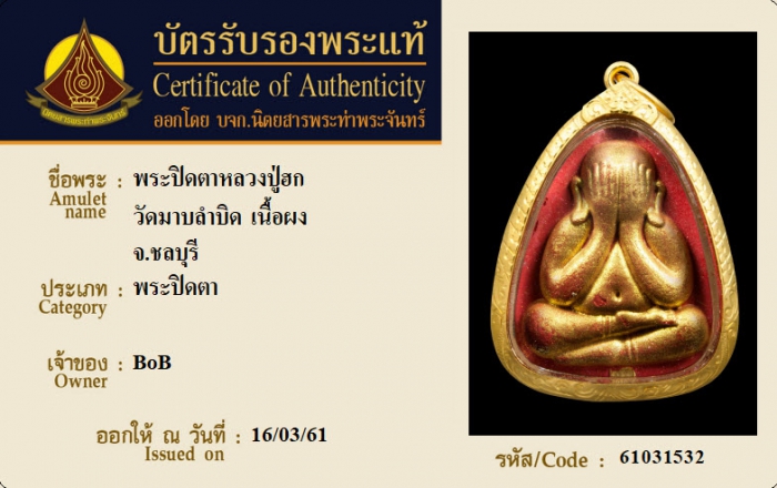 ค้นหาใบการันตีพระแท้