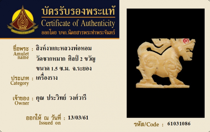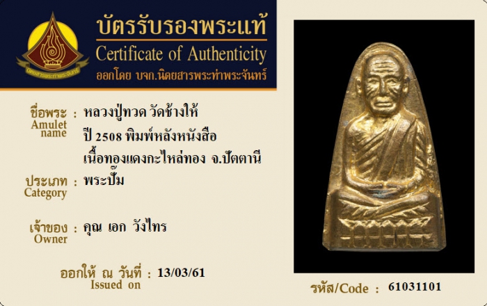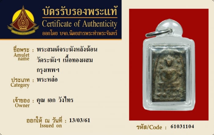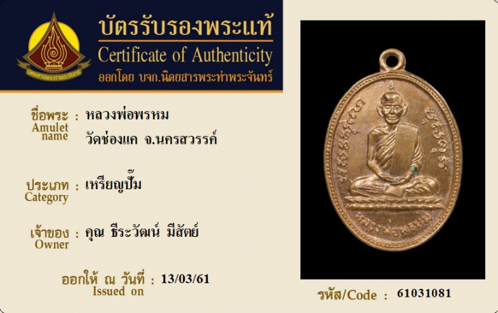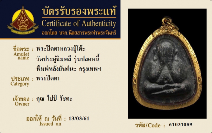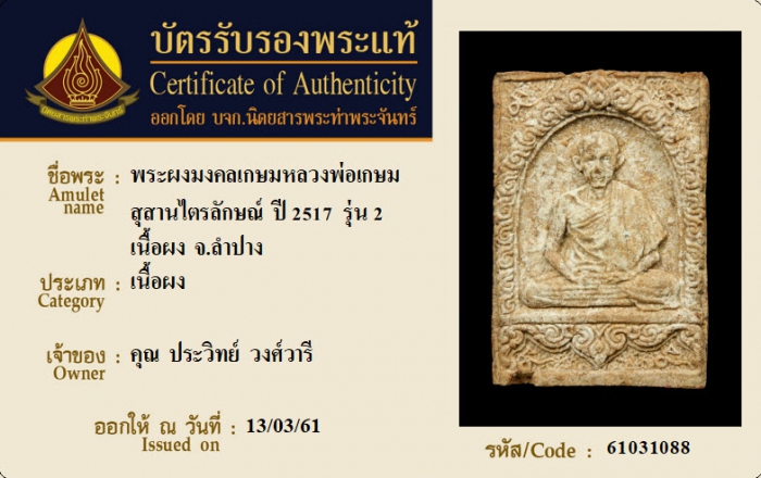 ค้นหาใบการันตีพระแท้