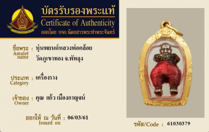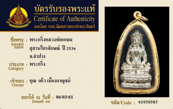 ค้นหาใบการันตีพระแท้