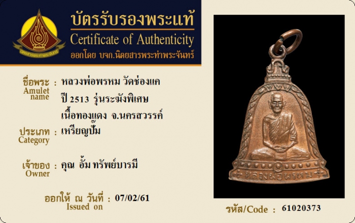 ค้นหาใบการันตีพระแท้
