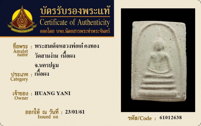 ค้นหาใบการันตีพระแท้