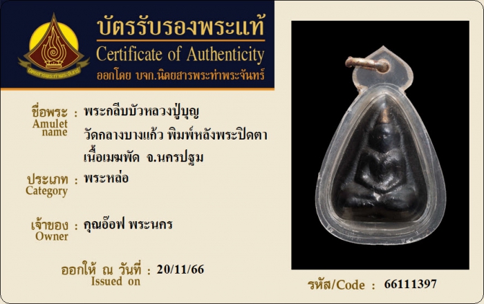ค้นหาใบการันตีพระแท้