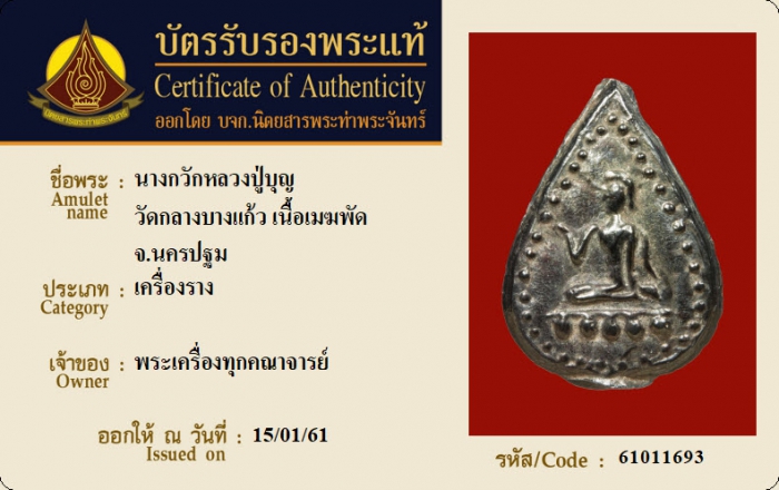 ค้นหาใบการันตีพระแท้