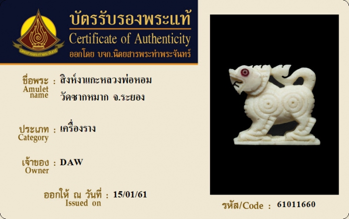 ค้นหาใบการันตีพระแท้