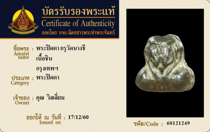 ค้นหาใบการันตีพระแท้