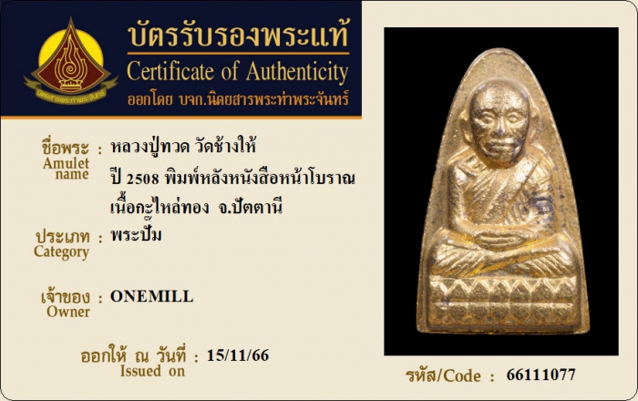 ค้นหาใบการันตีพระแท้