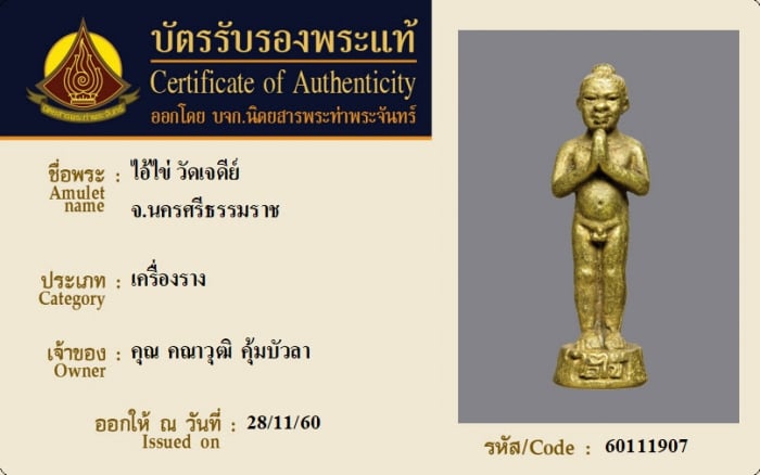 ค้นหาใบการันตีพระแท้