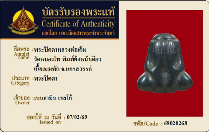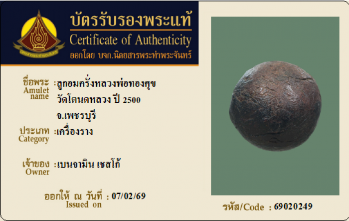 ค้นหาใบการันตีพระแท้