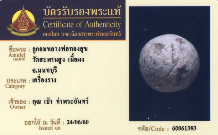 ค้นหาใบการันตีพระแท้