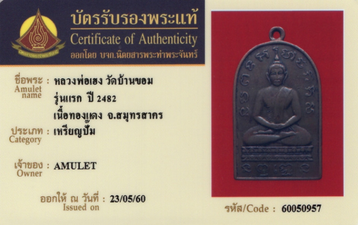 ค้นหาใบการันตีพระแท้