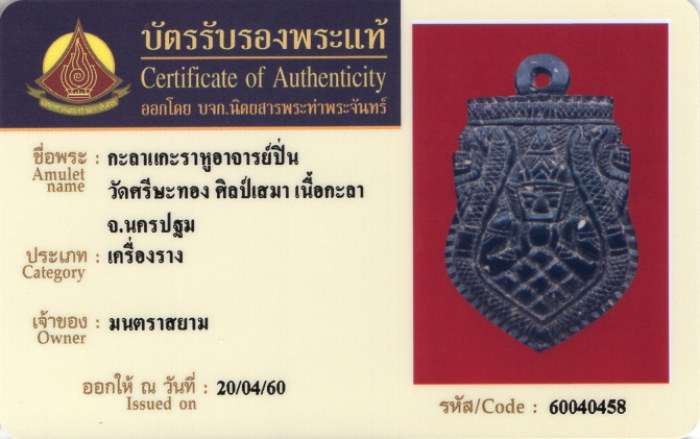 ค้นหาใบการันตีพระแท้