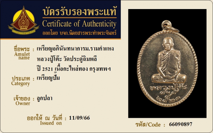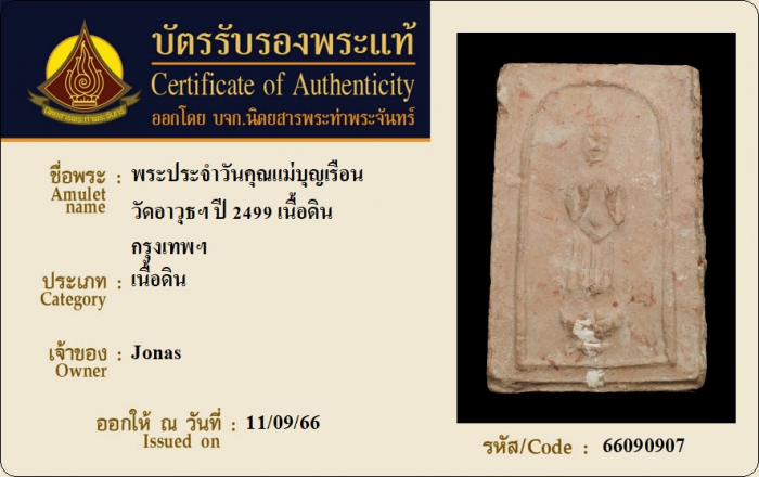 ค้นหาใบการันตีพระแท้