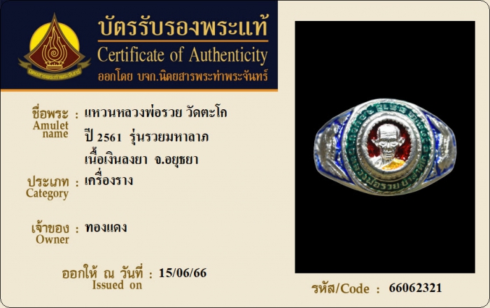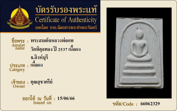 ค้นหาใบการันตีพระแท้