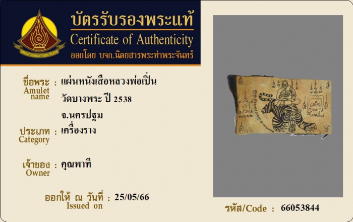 ค้นหาใบการันตีพระแท้