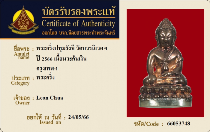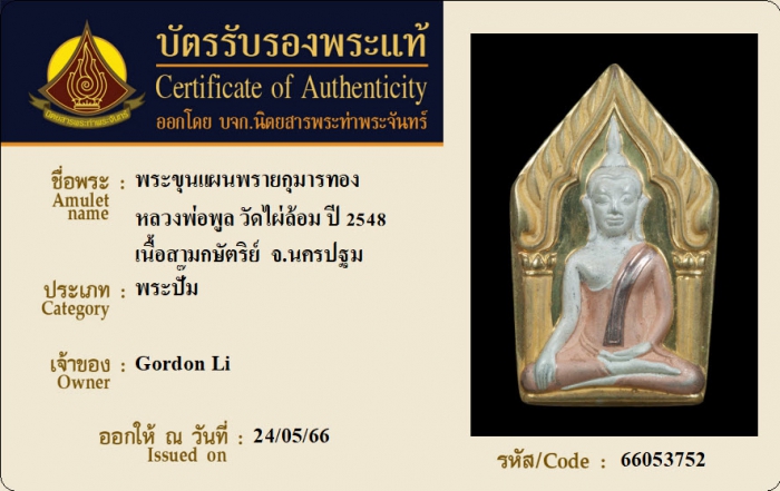 ค้นหาใบการันตีพระแท้