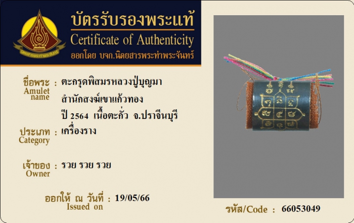 ค้นหาใบการันตีพระแท้