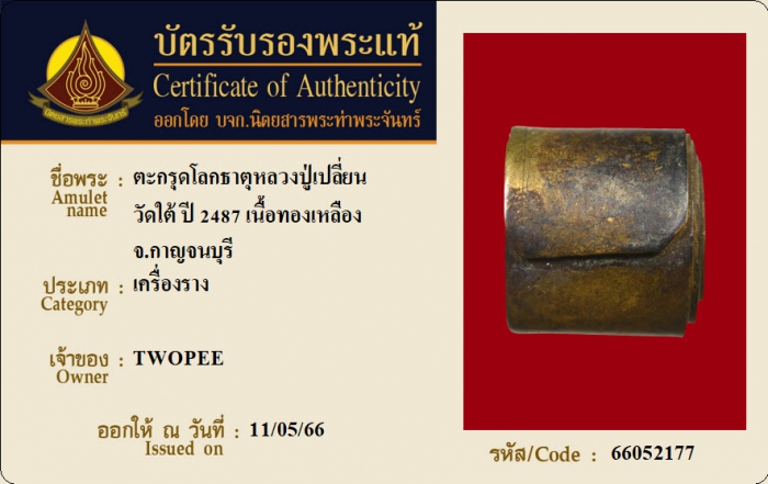ค้นหาใบการันตีพระแท้