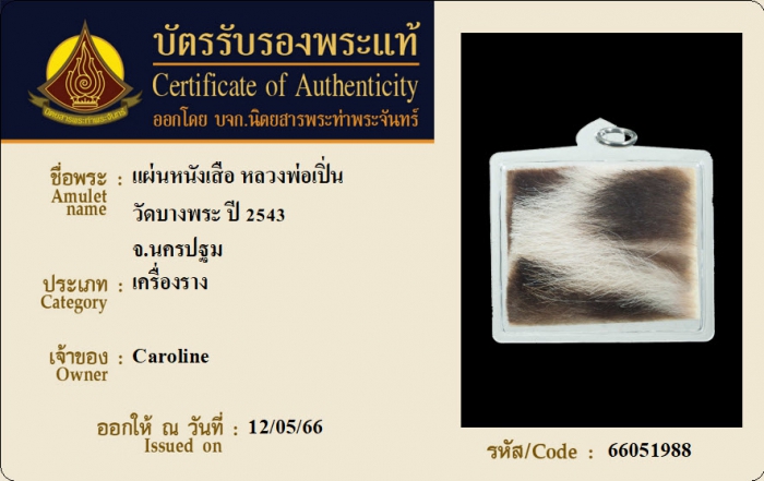 ค้นหาใบการันตีพระแท้