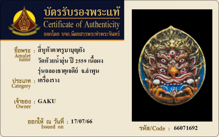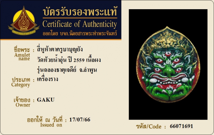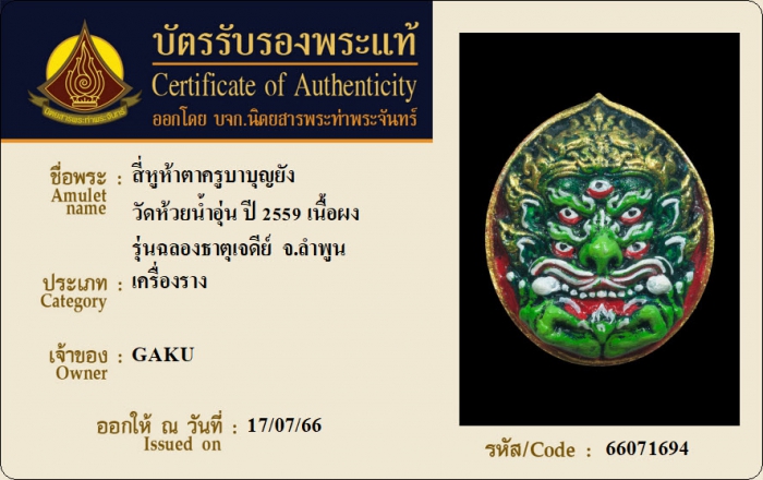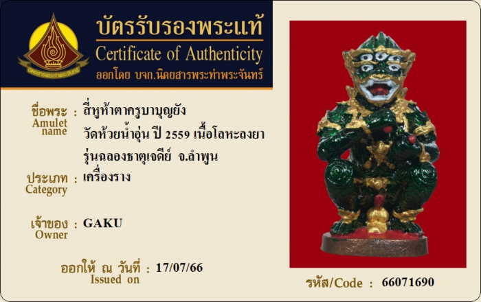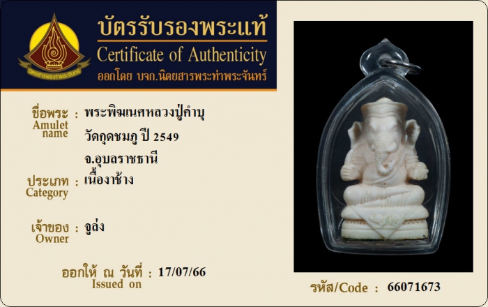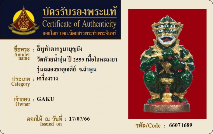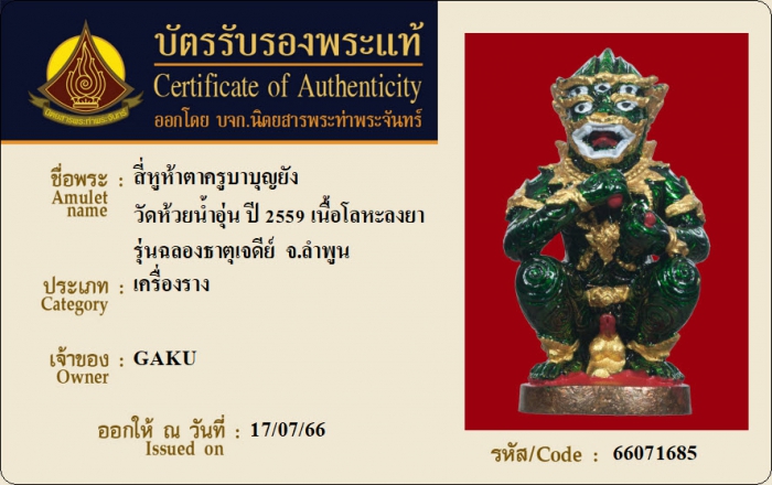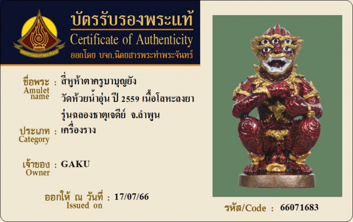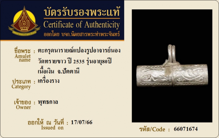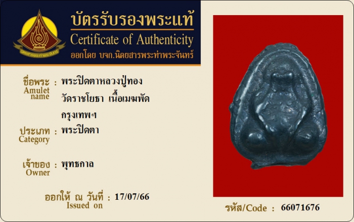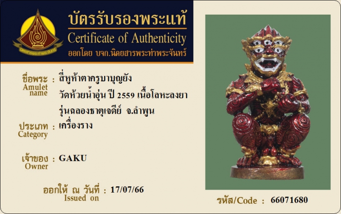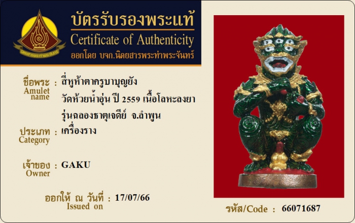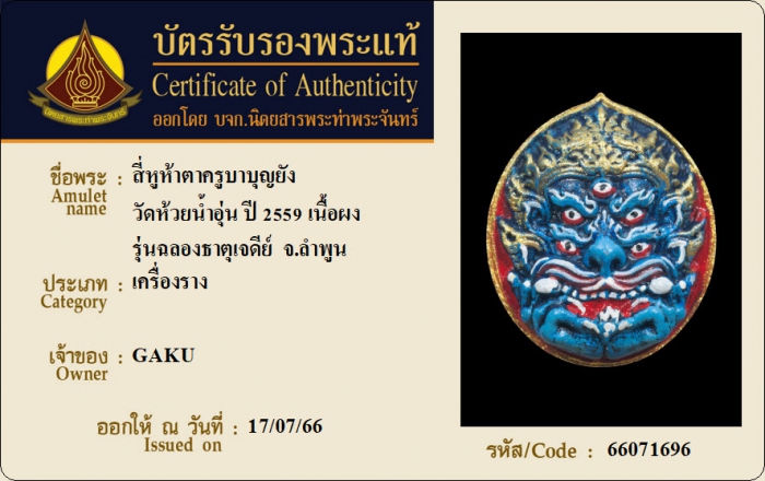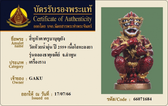 ค้นหาใบการันตีพระแท้