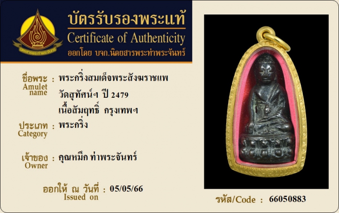 ค้นหาใบการันตีพระแท้