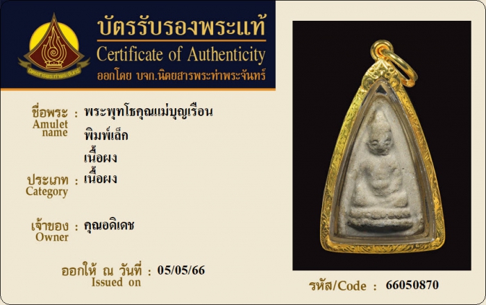 ค้นหาใบการันตีพระแท้