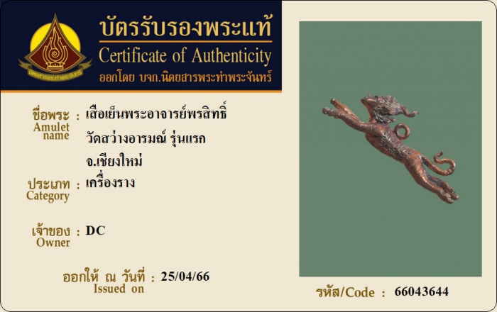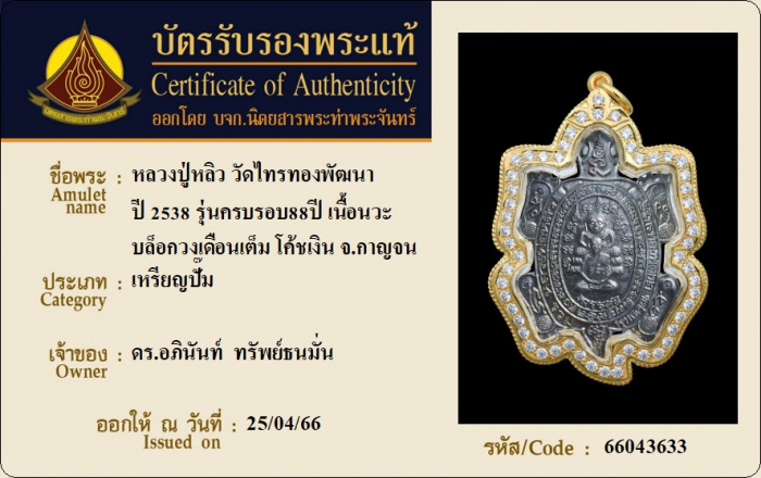 ค้นหาใบการันตีพระแท้