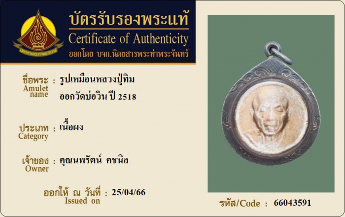 ค้นหาใบการันตีพระแท้
